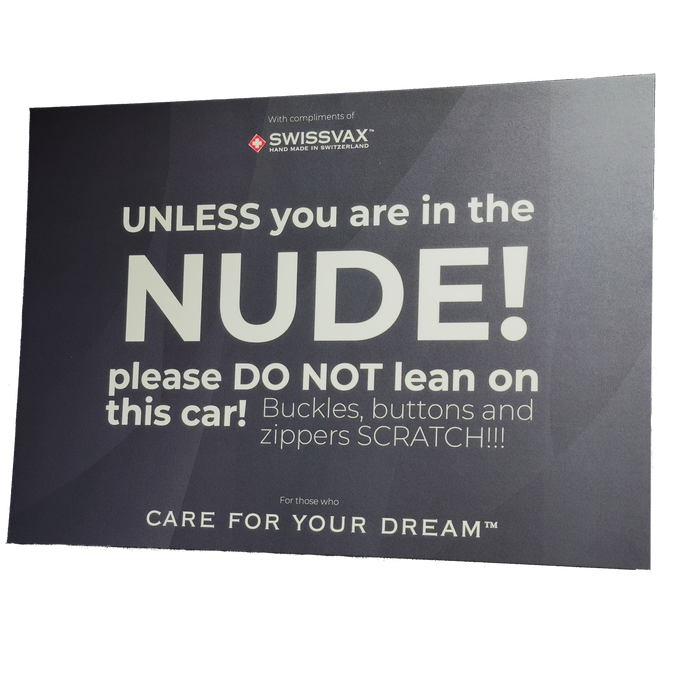 Şık tasarımıyla bu kart broşür yalnızca bir uyarı değil – otomotiv mükemmelliğine duyduğunuz tutkuyu yansıtan bir ifadedir. İster klasik araç buluşmalarında, ister özel sergilerde veya yolda olsun – bu kart ile herkes şunu anlar: Aracınız bir sanat eseridir ve SWISSVAX ile özenle korunmuştur.